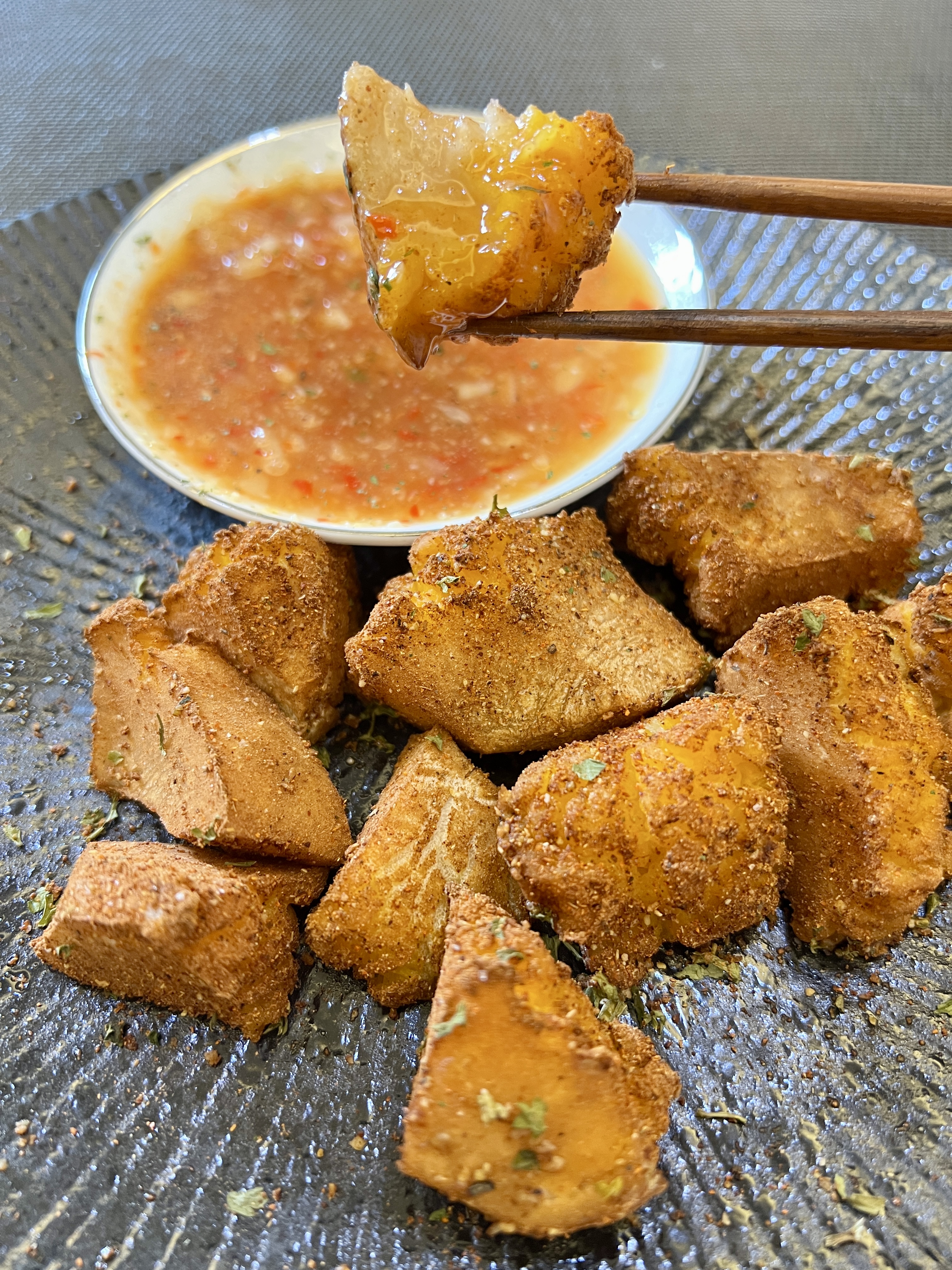 金耳切块,喜欢的香料粉腌渍5五分钟(五香粉,辣椒粉,肉桂粉,黑胡椒粉),罗勒碎,空气炸锅8分钟,蘸灵魂酱汁(柠檬汁生蜂蜜橙汁香料粉蒜泥小米辣).这个吃法比生吃和做汤都好吃。大人小孩都会爱吃,家人吃咸口可以放一点点粉盐,口感估计更好文章源自安疗网https://www.anliao.life/安疗生活-https://www.anliao.life/22284.html