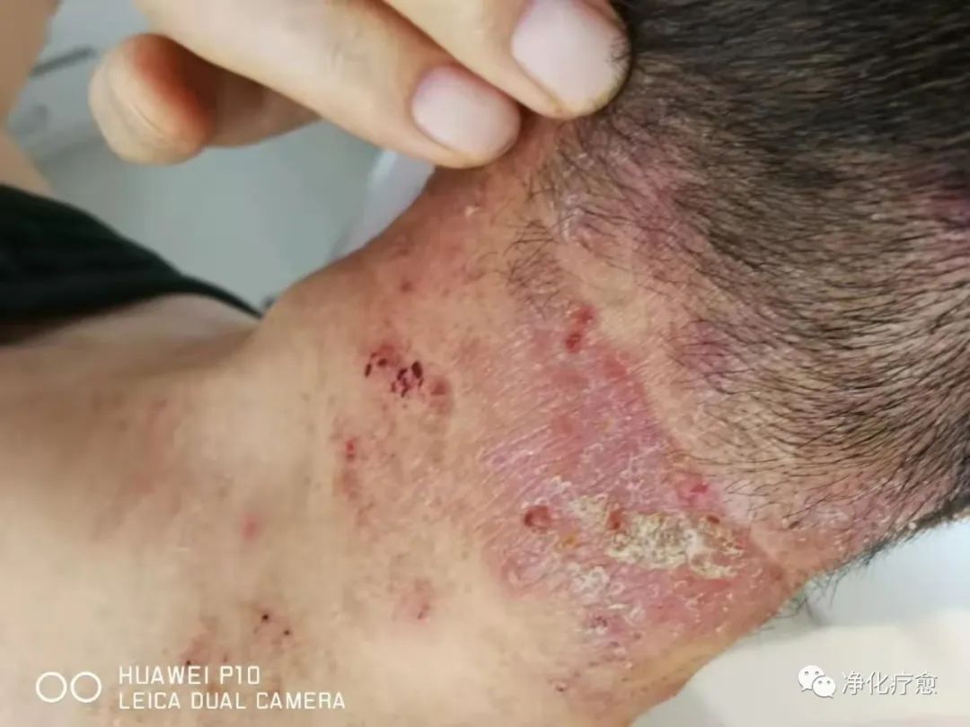 - 皮肤特别怕日光晒- 尤其是夏天,头顶和脖子以及胳膊等裸露处流脓流水- 日晒后红疹发痒,皮肤破损
